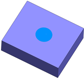 Trennen Sie eine Fläche durch Erstellen eines Schnitts. Die beiden Körper müssen sich an Kanten bzw. Flächen berühren. Um die Oberseite der Platte zu trennen, müssen Sie zunächst die zylindrische Fläche als Trennende Fläche, und anschließend die Oberseite der Platte als Zu trennende Fläche auswählen. Die Oberseite der Platte wird in zwei Flächen aufgeteilt.