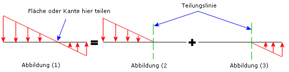 Wenn eine ungleichmäßige Kraft angewendet wird, die ihre Richtung ändert [Abbildung (1)], teilen Sie das Lastelement dort auf, wo die Kraft ihre Richtung ändert, und wenden Sie die Kraft in zwei Schritten an [Abbildung (2) & Abbildung (3)].
