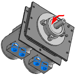 Ein auf einem Prüftisch montierter Motor überträgt z. B. harmonische Lasten über die Bolzen an die Aufhängung. Sie können die Aufhängung modellieren und eine harmonische Studie einrichten, um die stationären Spitzenverschiebungen, -spannungen usw. für den Betriebsfrequenzbereich des Motors zu berechnen. Sie können den Motor durch eine verteilte Masse annähern.