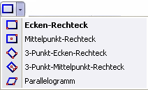 Ähnliche Befehle sind auf Symbolleisten und im CommandManager in Flyout-Schaltflächen gruppiert. So sind zum Beispiel Varianten des Rechteckbefehls in einer Schaltfläche mit Flyout-Steuerung gruppiert.