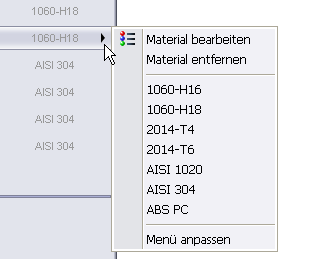 Sie können Komponentenmaterialien direkt in der Liste der Baugruppenvisualisierung hinzufügen, bearbeiten oder entfernen.