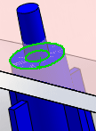 図では、合致面が蓋(透明)の底面になっています。 ボスの高さは、合致面に基づいて自動的に計算されます。 緑でハイライト表示されたエッジは、合致面とボスの一致を示しています。 取付ピンは蓋を貫通しています。