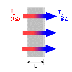 ここで、K は熱伝導率で、材料の熱を伝導する能力を測定します。K の単位は W/m.ºC または (Btu/s)/in.ºF です。下の図のような平面の場合は、次の式によって熱伝導率が得られます。