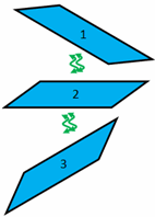 青色のサーフェスはシェルの上面側です。シェル 1 と 3 はお互いに見えません。