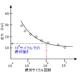 SN カーブは、平均の疲労寿命か、特定の破壊確率に基づいています。材料の SN カーブを作成するには、交番応力、平均応力(あるいは応力比)を統計的に変更して、サイクル数をカウントする試験を多く実行する必要があります。
