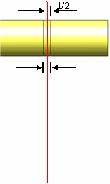 図で、青の円はハウジング用に選択されたシェルエッジです。t はシェルの厚みです。 分割ラインの間の距離は同じく t にならなければなりません。