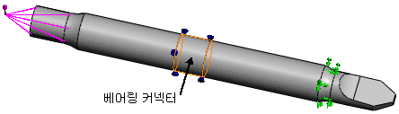 자체정렬 허용 옵션을 선택하면, 베어링 커넥터의 원통면이 그 축을 벗어나 회전합니다. 이 옵션을 선택 취소하면, 원통면의 축을 벗어난 회전이 제한며 원통면에 모멘트가 생깁니다.