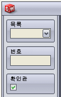 단일 설정 모델의 경우, 팔레트에는 목록 상자, 숫자 상자 및 확인 상자와 같은 콘트롤이 포함되어 있습니다. 설계 변수 테이블 변수에 콘트롤 유형을 지정하고 값과 관계를 지정합니다.