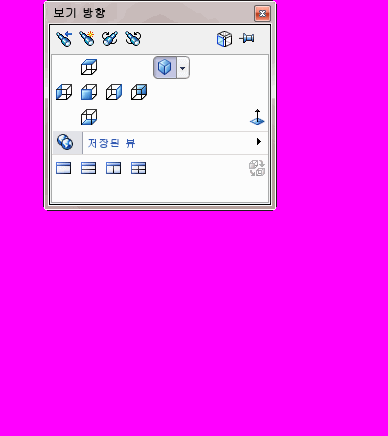 뷰 방향 대화 상자에는 표준 보기 도구 모음에 있는 뷰를 포함하여 사용자 정의 뷰가 포함되어 있습니다. 방향 상자를 표시하려면, 표준 보기 방향 도구 모음에서 뷰 방향