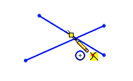 포인터 표시는 포인터를 기하 구속 조건 (교차 등과 같은 조건) 위로 가져갈 때 활성 도구 (선이나 원)와 치수 (각도 치수와 원호 반경) 등을 표시해 주는 기능입니다. 포인터가 구속조건을 표시할 때 (예를 들어, 수평 조건임을 나타내는