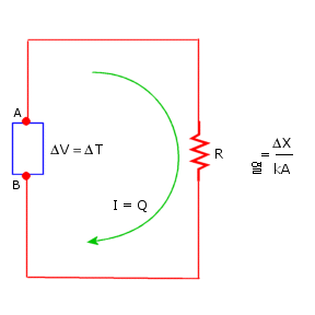Q = k A ( T1 - T2 )/Δx