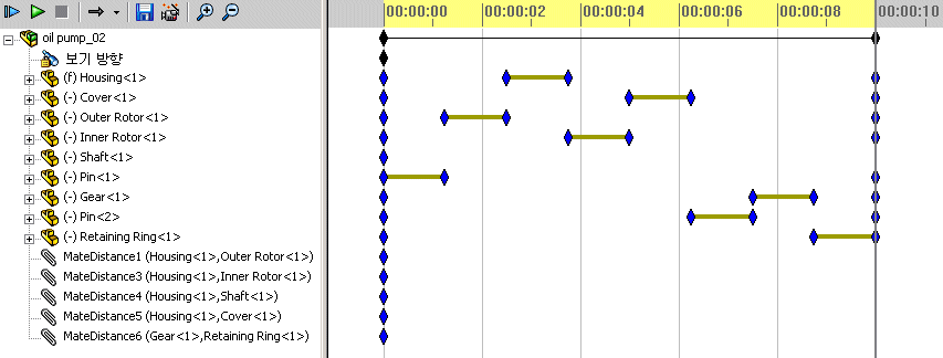 분해와 조립에 애니메이션 마법사를 사용하려면 먼저 어셈블리의 분해도를 작성해야 합니다. 애니메이션 마법사를 사용하여 작성하는 애니메이션은 같은 계산을 기준으로 합니다.