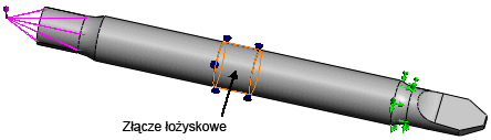Gdy opcja Pozwól na samonastawność jest wybrana, cylindryczna ściana złącza łożyskowego obraca się poza swoją osią. Gdy opcja nie jest zaznaczona, cylindryczna ściana nie może obracać się poza swoją osią, a na ścianie cylindrycznej powstają momenty.