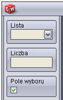 Dla modeli z jedną konfiguracją, paleta zawiera ogólne formanty (pola list, pola liczb i pola zaznaczenia). Użytkownik przypisuje typy formantów do parametrów tabeli konfiguracji oraz określa wartości i relacje.