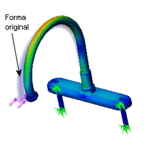 Por exemplo, você pode querer examinar os efeitos de uma força aplicada a uma torneira. O SimulationXpress simula o ciclo do projeto e fornece os resultados da tensão. Ele também mostra as áreas críticas e os níveis de segurança em várias regiões da torneira. Com base nesses resultados, você pode reforçar as regiões inseguras e remover material das regiões onde há excesso.