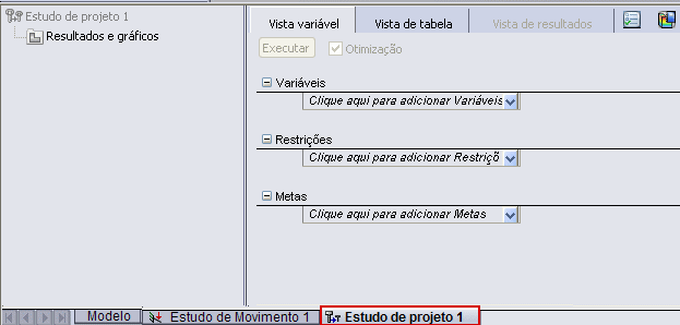 Crie um Estudo de Projeto para executar uma otimização ou avaliar cenários específicos do seu projeto. O Estudo de Projeto oferece um fluxo de trabalho uniforme para os estudos de Otimização e Avaliação. Você pode plotar os corpos atualizados e os resultados calculados para diferentes iterações ou cenários selecionando suas colunas na guia Vista de resultados.