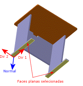 Só é possível usar essa opção quando toda as faces selecionadas são planas. Cada face pode estar em um plano diferente. Cada face é restrita em relação a suas próprias direções (Direção 1, Direção 2 e Normal).