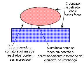 - Os resultados são mais precisos quando a distância entre as duas faces em contato é menor que ou igual ao tamanho do elemento na vizinhança. O exemplo abaixo pode fornecer resultados impreciso.
