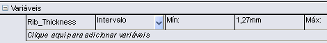 Variáveis: Você seleciona em uma lista de parâmetros predefinidos ou define um novo parâmetro selecionando Adicionar parâmetro. Você pode usar quaisquer parâmetros de simulação e variáveis globais acionadoras. Você define as variáveis como Intervalo,