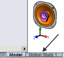 Você pode criar o primeiro estudo de movimento de uma montagem clicando na guia Estudo de movimentoà direita da guia Modelo, na parte inferior da área de gráficos.