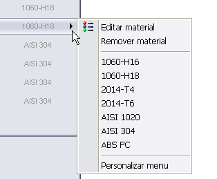 aparece à direita do material.