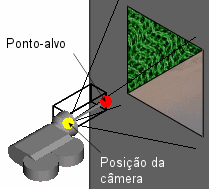• A Posição da câmera e o Ponto-alvo são fixados no ponto final da linha e a um ponto, respectivamente.