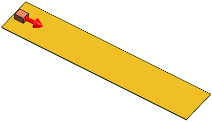 O modelo usado para esses exemplos é um bloco retangular que desliza sobre uma superfície plana. A superfície inferior do bloco tem um posicionamento coincidente com a superfície superior da chapa base. Um motor linear é aplicado ao bloco.