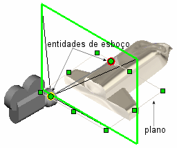 A Posição da câmera e o Ponto-alvo são fixados no ponto final da linha e a um ponto, respectivamente.