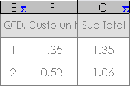 Equações em células ou colunas são indicadas por um símbolo de equação.