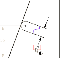 Adicione um arco tangente, um spline e dimensões ao esboço. Não é necessário tornar o esboço totalmente definido. As dimensões definem o tamanho do esboço e o restringem à peça.
