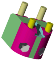 Cria filetes de tamanho constante com cantos arredondados. Selecione pelo menos duas arestas adjacentes para aplicar filete. Os filetes de canto arredondado têm uma transição suave entre as arestas que elimina a junção aguda em que as arestas se encontram.