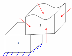 В некоторых моделях замена тела на оказываемый им эффект может быть затруднена. Например, как в случае на рисунке ниже: тело 2 не требуется подвергать моделированию, однако заместить его нельзя.