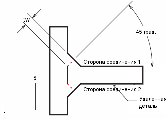 Сварные тяги решаются в координаты галтели шва, как показано ниже. Область галтели шва концентрируется у корня.
