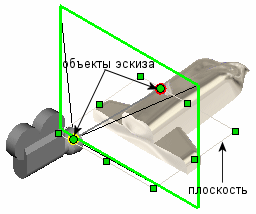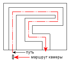 - Платформой камеры является модель космического корабля, которая включает линию (скрыта) и точку.