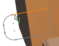 Контур эскиза, выступающий за грань. Выберите контур в области, которая касается грани
