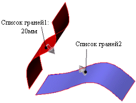 - Нажмите на Список граней 2 и выберите вторую грань для скругления в графической области. Если необходимо, выберите Реверс грани