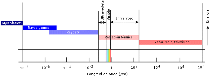 La radiación térmica es la energía térmica emitida por los cuerpos en forma de ondas electromagnéticas debido a su temperatura. Todos los cuerpos con temperaturas que estén por sobre el cero absoluto emiten energía térmica. Dado que las ondas electromagnéticas viajan en el vacío, no se requiere ningún tipo de medio para que exista la radiación. La siguiente figura muestra el rango, en longitud de onda, de la radiación térmica comparado con la radiación emitida por otros medios (rayos X, rayos γ, rayos cósmicos, etc.).