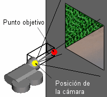 • Posición de cámara y Punto objetivo están asociados al trineo de la cámara.