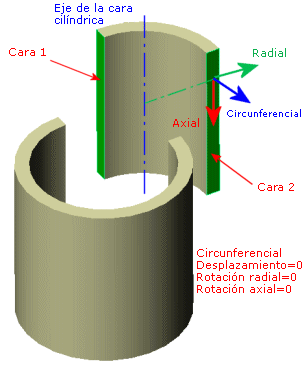 Este modelo es axisimétrico. Se puede analizar la mitad o un cuarto del modelo. La restricción Simetría aplica automáticamente las condiciones de traslación y rotación a las caras seleccionadas.