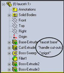 Se pueden visualizar descripciones de operaciones en el gestor de diseño del FeatureManager.