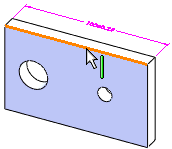Para definir una operación de ancho, también puede seleccionar una arista lineal limitada por dos planos paralelos que sean perpendiculares a la arista. La selección de aristas sólo se admite para operaciones de ancho.