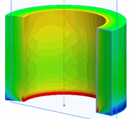 For plane stress, plane strain, and extruded simplification types, the results are extruded along the section depth. For the axisymmetric analysis type, the results are revolved by 330º about the axis of symmetry.