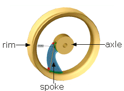 例如,当您设计辐条轮时,您知道轮缘和轮轴的要求。然而,您不知道如何设计辐条。您可使用多实体零件生成轮缘和轮轴,然后生成连接实体的辐条。