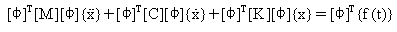 Podstawienie wektora {u} z (Równania 4) i przemnożenie go przez [Φ]T (Równanie 1) daje: