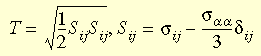 Natężenie naprężenia ścinającego jest definiowane przez pierwiastek kwadratowy z drugiego niezmiennika dewiatora naprężenia i może być wyrażone jako:
