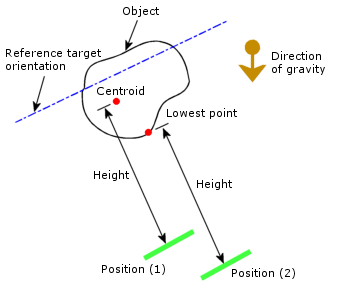 • Se você especificar a Altura, o corpo atinge o plano depois de percorrer a distância da altura especificada na direção da gravidade.