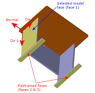Você pode usar o modelo da face 1 como uma referência para configurar o movimento das faces 2 e 3 ao longo da direção 1 da face (Dir 1) como zero. As outras duas direções (Dir 2 e Normal) não devem ser especificadas.