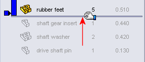 , no painel da Árvore do projeto do FeatureManager, contém uma lista de todos os componentes da montagem, inicialmente classificados por nome de arquivo. Há três colunas: