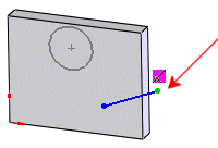 2. Arraste a alça pendente até a entidade de esboço apropriada para transferir a relação de uma entidade ausente à entidade selecionada.