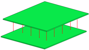 As molas inseridas na área comum das faces são obtidas por projeção. Você define a rigidez e as forças de pré-carregamento da mola por unidade de área.